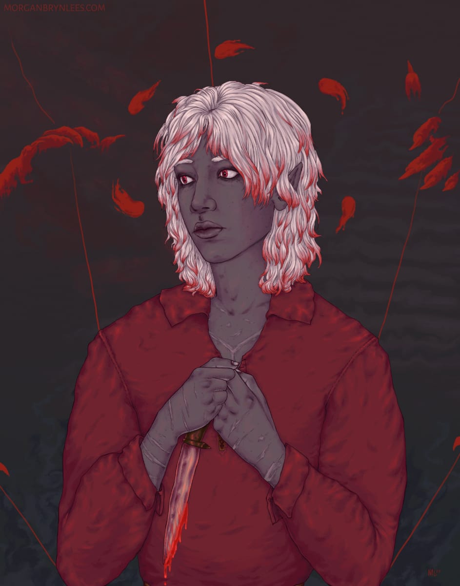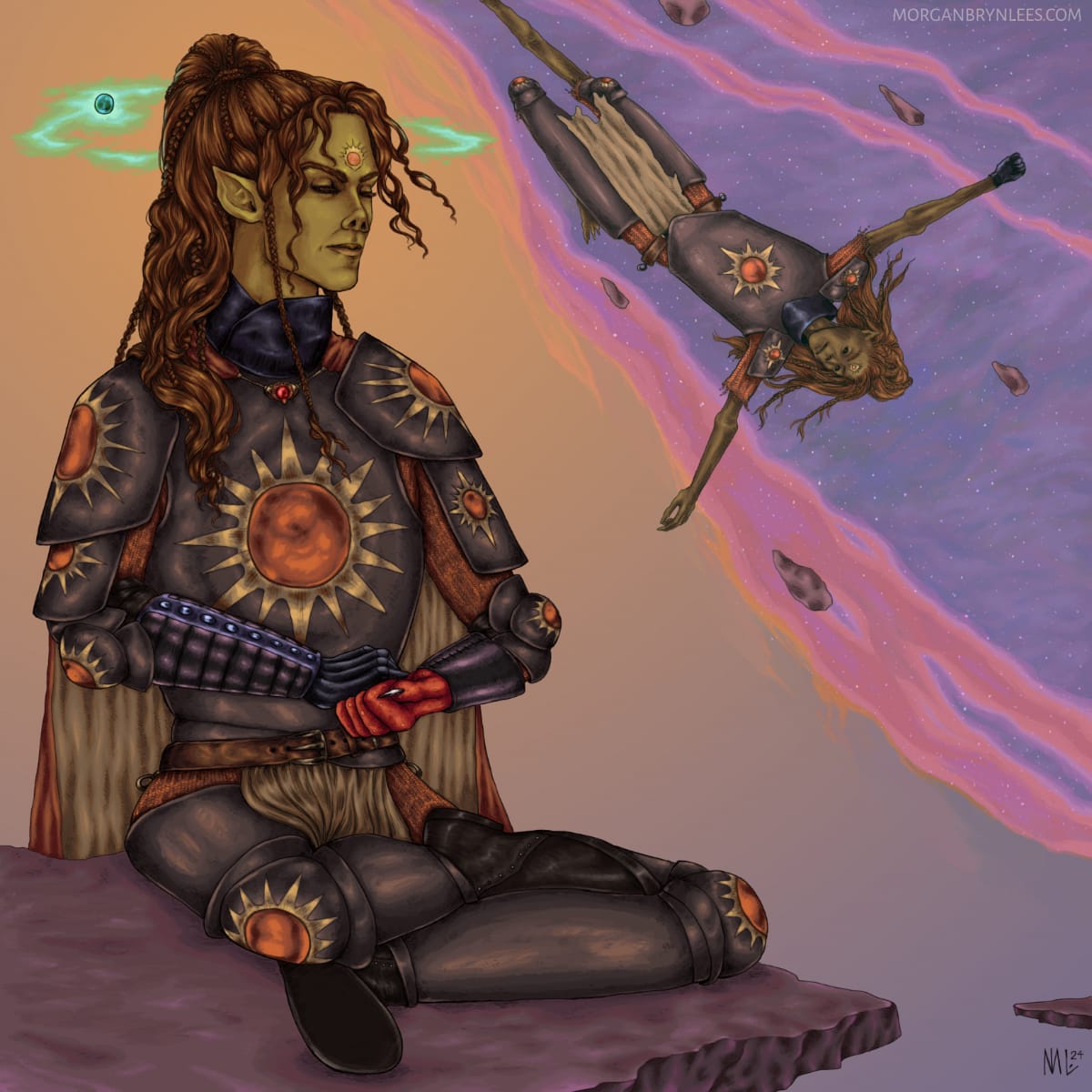 Yezka'al, split between pre- and post-illithid transformation. Yezka'al was the first character I played through Baldur's Gate 3, although I ended up spending more time with Vethryn. (Partly because with the whole illithid thing they were effectively dead at the end of the game, unlike him.)