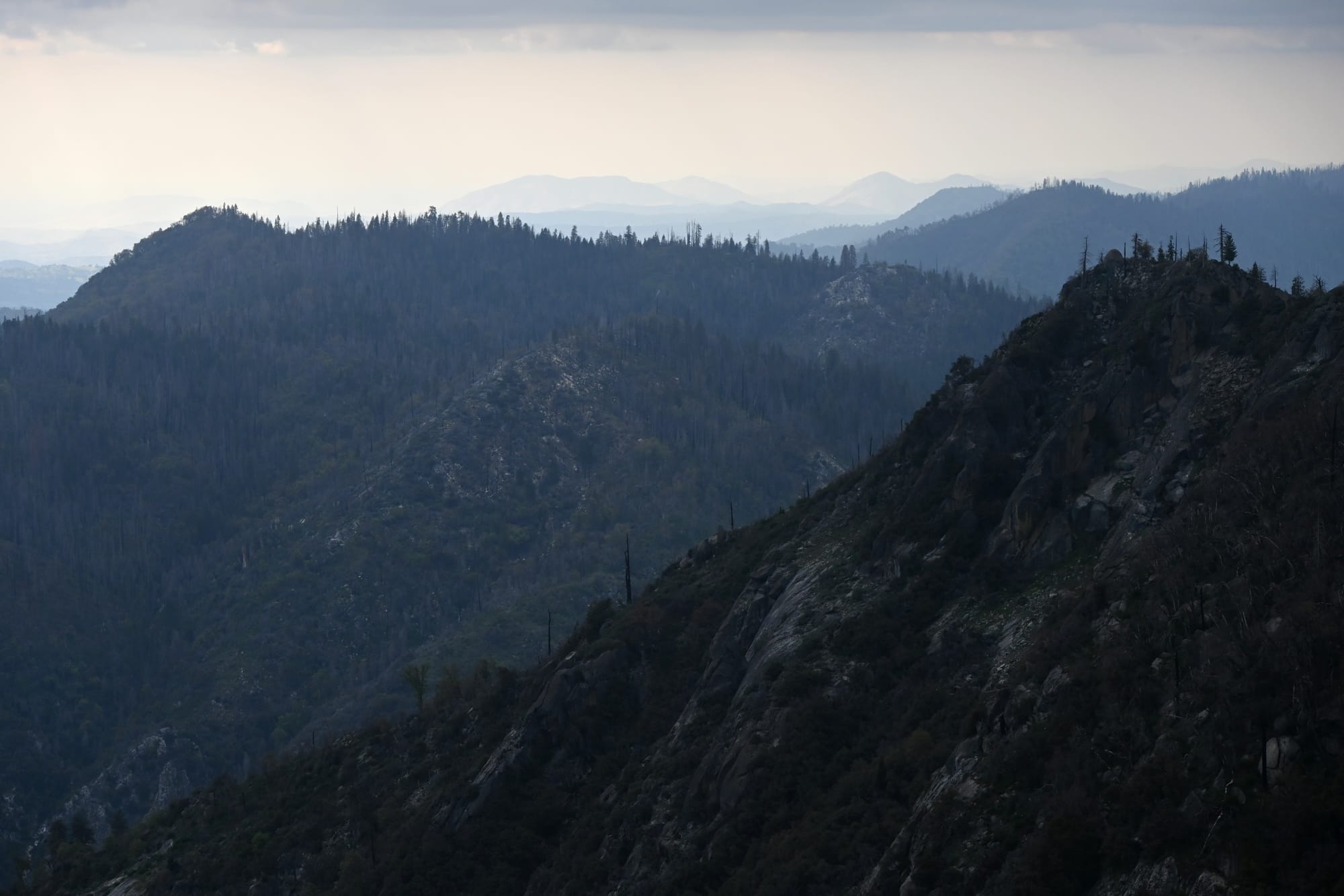 Panoramic Point in Kings' CanyonThe night sky outside of Muir LodgeFor one day in Sequoia and Kings' Canyon the misty conditions I'd been hoping for the whole trip presented themselvesMost of my photos as such ended up coming from that day, but I narrowed it down to threeThe bird flying through the shot warrants its inclusion over several others (the dense mist briefly gave way to hail on this hike, but hasn't yet)View from the top of Moro Rock, looking back towards the Giant Forest (I love how easily one can discern the silhouettes of individual trees from this distance)
